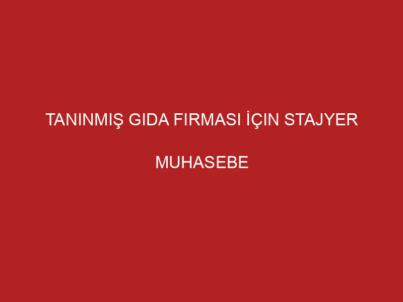 Tanınmış Gıda Firması İçin Stajyer Muhasebe